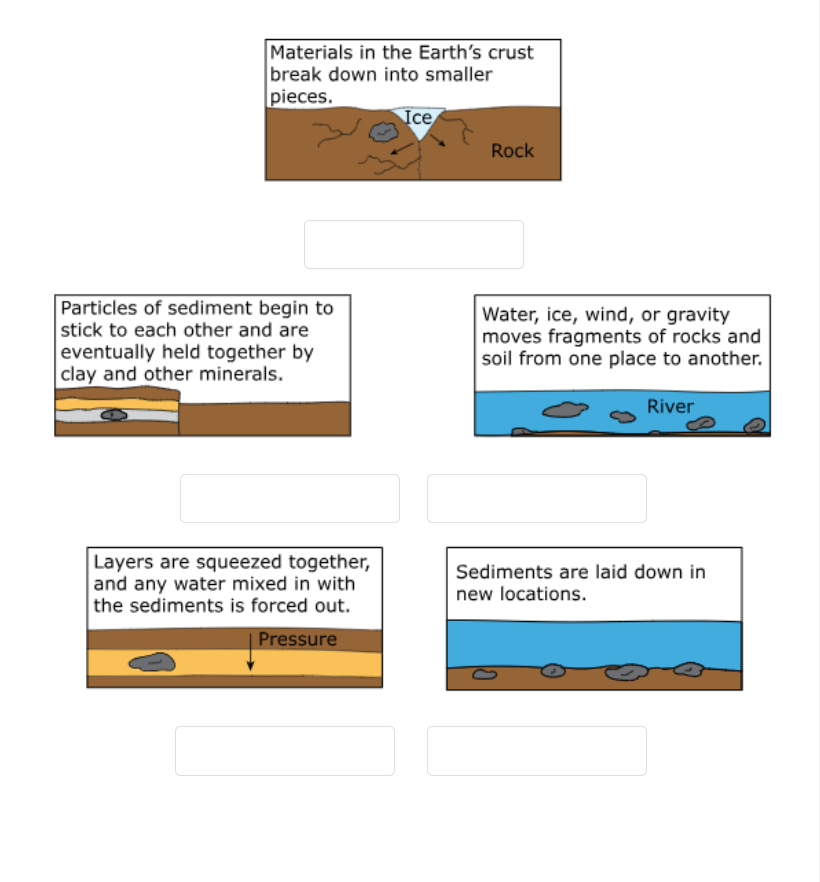 Sedimentary rock is formed through several different processes. Match each process with its description.