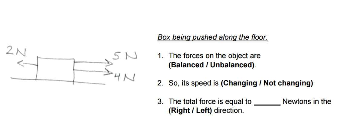 Two students push on opposite sides of a box. One pushes with 50 N to the right, and the other pushes with 30 N to the left. What is the total force on the box?