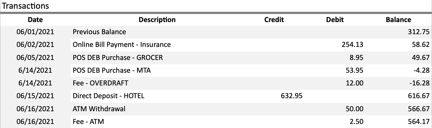 An excerpt from Andre’s bank statement is shown below. How much did he spend on his purchase from the MTA?