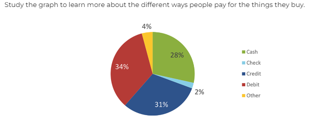 What total percentage of purchases were paid for with either a credit card, debit card, or check?