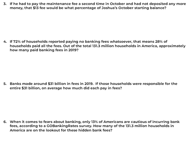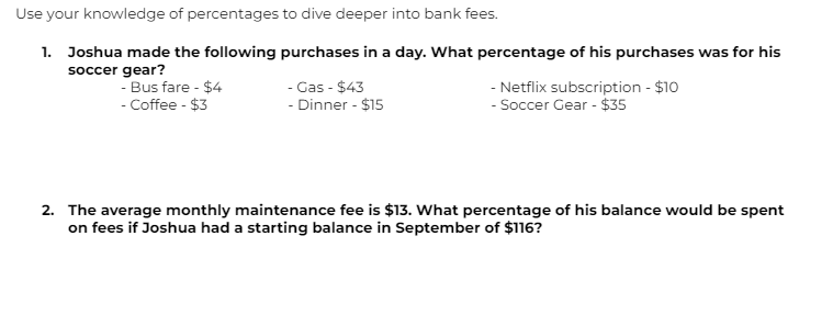 Section 5: Percentages and Bank Fees