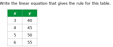 CC.7 Write a linear function from a table - Search Shortcut UYY