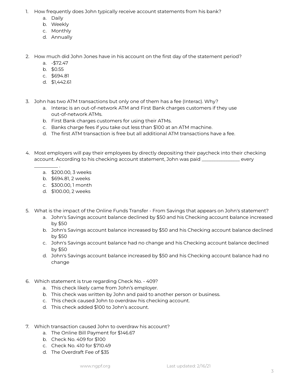 Read this article about common checking account fees. Then, answer the questions.