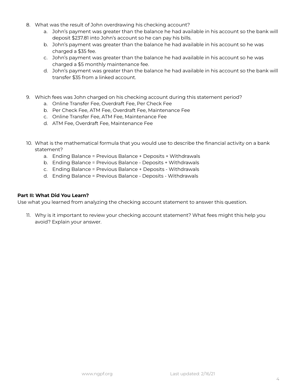 Section 4: Bank Fees