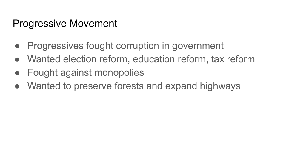In addition to these reforms, the Progressive Movement also focused on expanding roadways. Good roads were essential for connecting communities, boosting trade, and improving transportation. Improvements in the infrastructure allowed for better access to rural areas, benefiting both farmers and businesses.