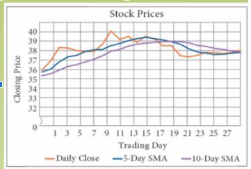 Determine the 3-day simple moving averages for the five consecutive day closing prices.