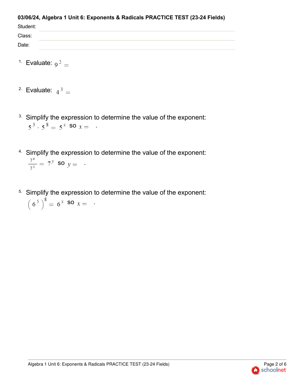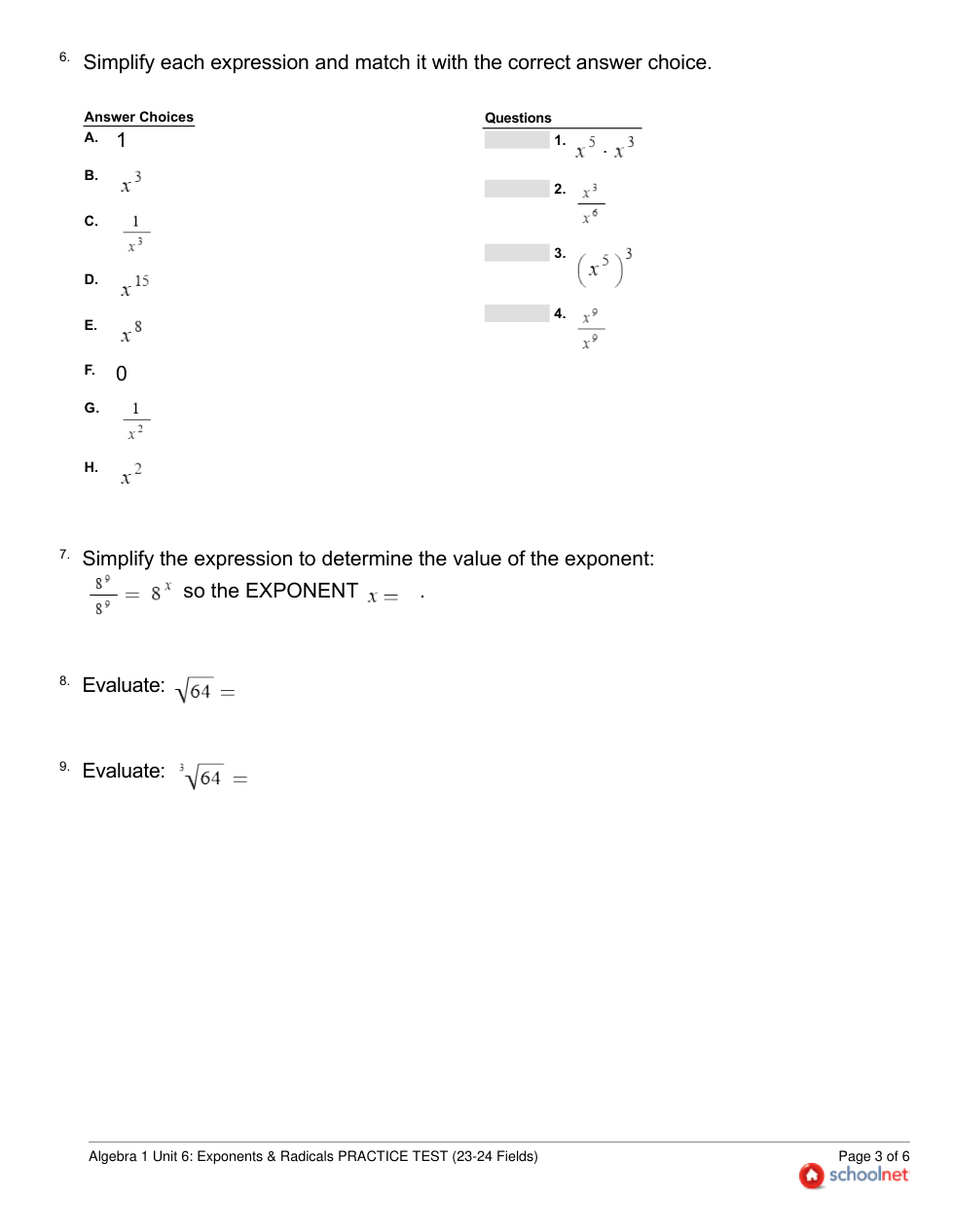 Simplify the expression to determine the value of the exponent (type in the NUMBER ONLY, NO X or X= !!!)