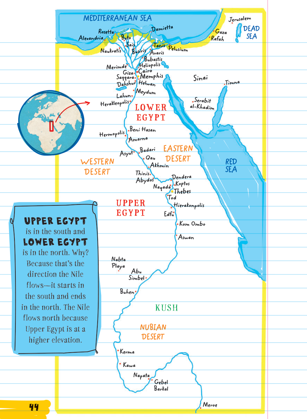 According to the map, Kush (Nubia) is in the South, Egypt is in the North.