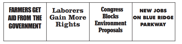 Which 3 headlines would have been seen describing the New Deal?