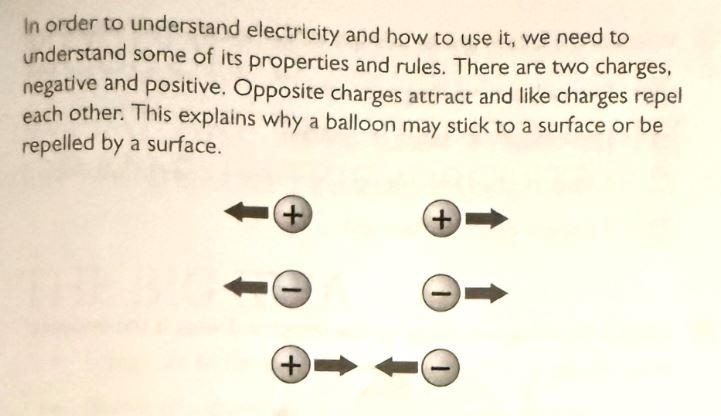 A model of the interaction between a negatively charged balloon and a wall is drawn.