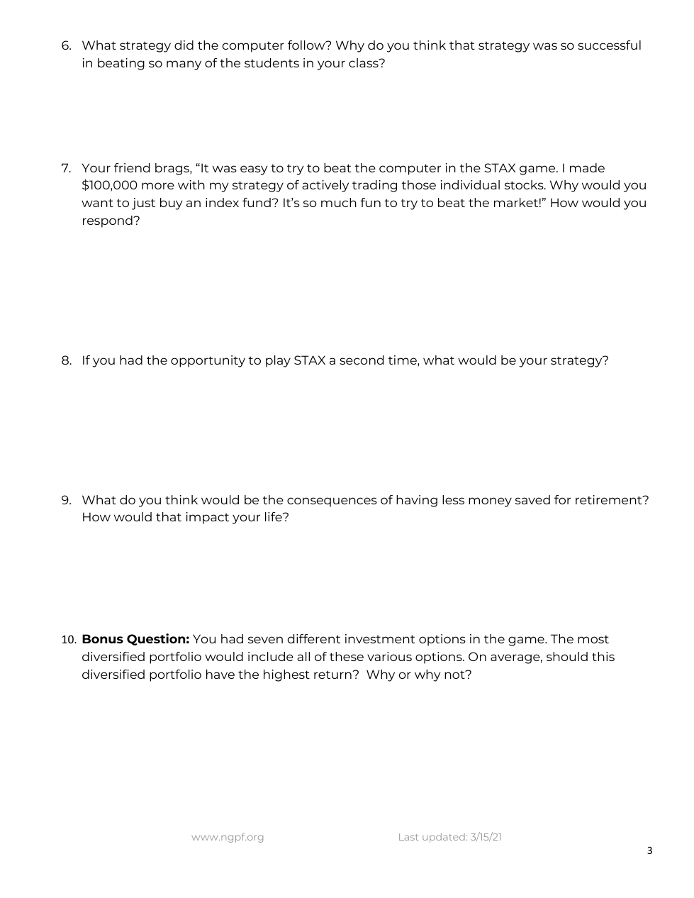 If you are in class on 11/13, play as a group otherwise play alone and answer the following questions.