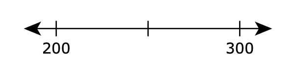 Michel plots a point on a number line to represent a number. The point is more than halfway between 200 and 300.