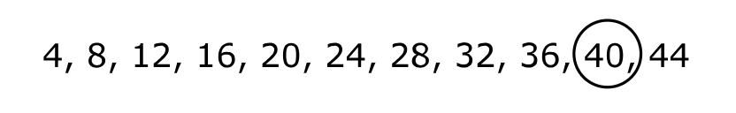 A student solved a problem by skip counting. The student’s work is shown with the answer circled.