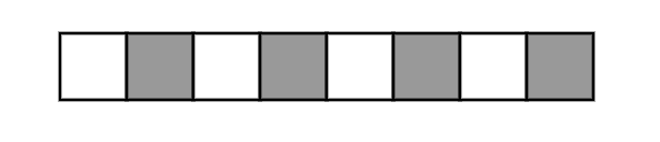 There are 8 squares on each row of a game board. One row of the game board is shown.