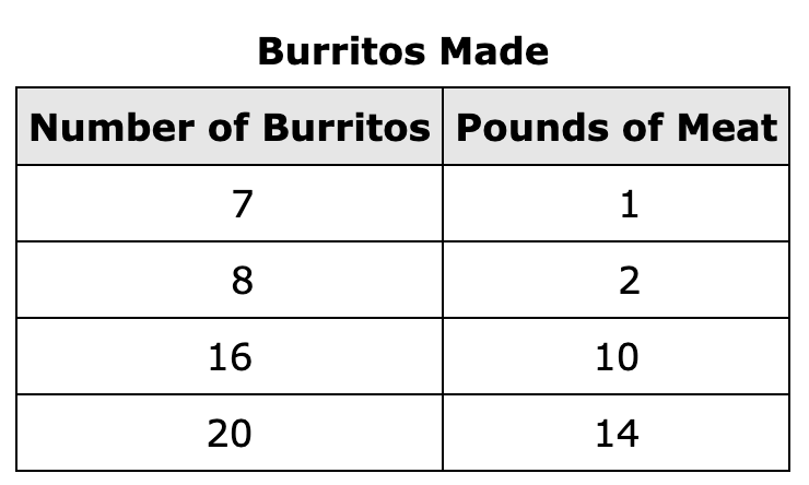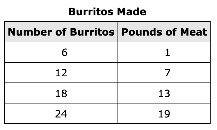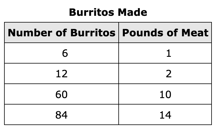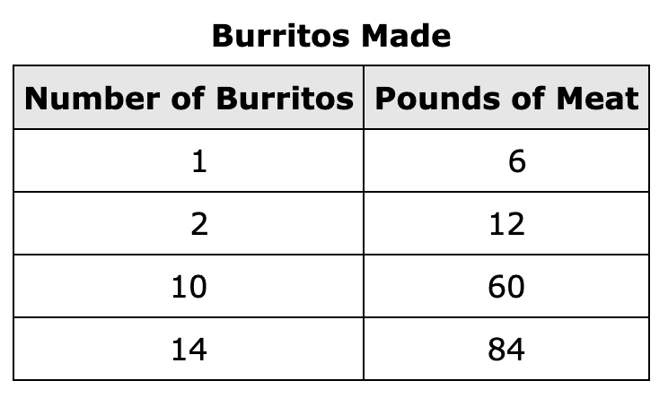 The chef at a restaurant makes 6 burritos with every 1 pound of meat.
