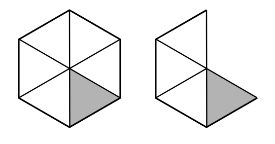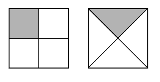 Calvin draws two congruent figures. He shades an equal area of each figure.