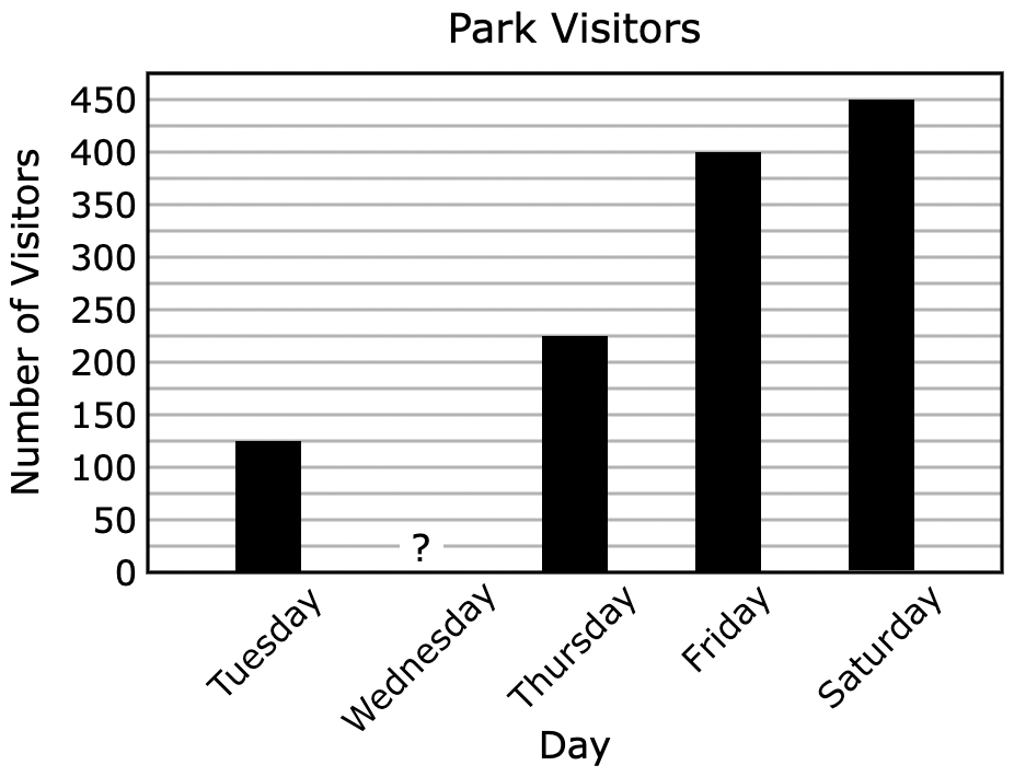 The number of visitors at a park is recorded for 5 days. The data are shown int eh bar graph with one value missing.