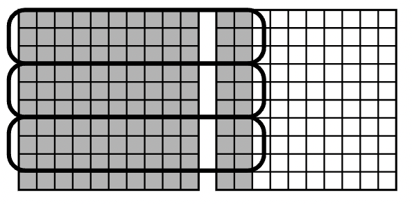 A person has $1.20 in pennies. The person makes 4 equal stacks of pennies. The equation 1.20\div4=0.30 shows the value of each stack in dollars.