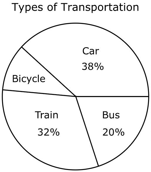 A survey of 150 employees at a company asked which type of transportation the employee uses to get to work. The types of transportation and some of their percentages are shown on the circle graph.