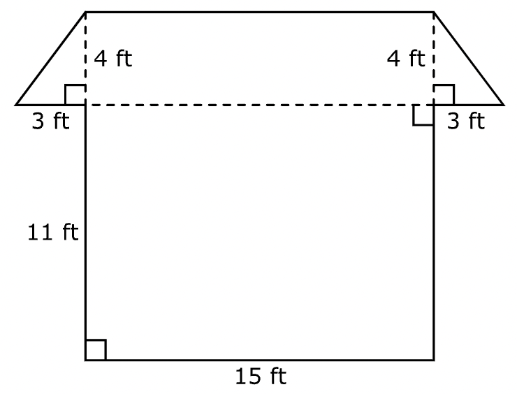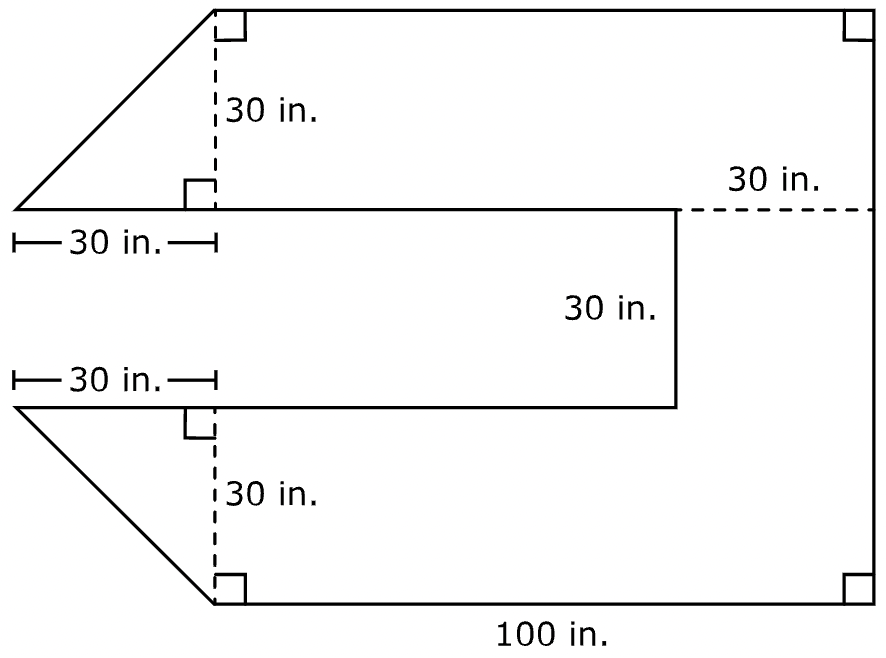 The top of a table is made up of triangles and rectangles. The table and its dimensions in inches are shown in the diagram.