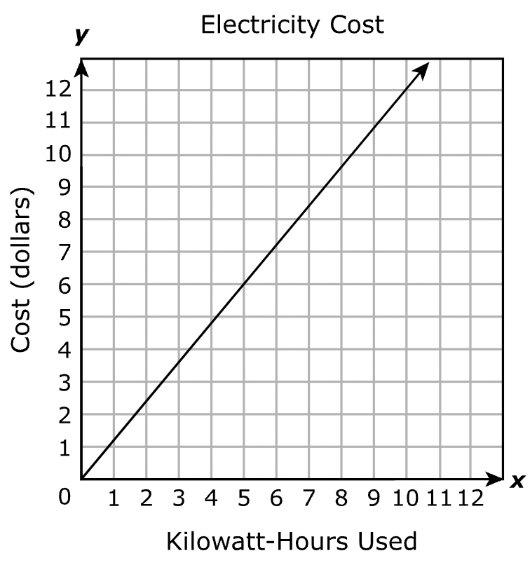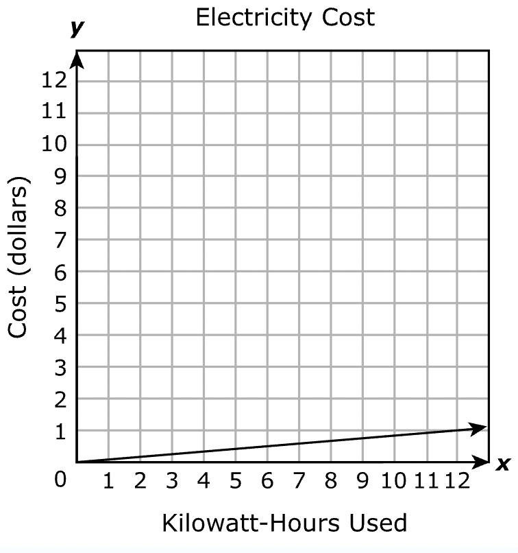 In a city, the average cost of electricity is $0.12 per kilowatt-hour. Which graph best represents this relationship?