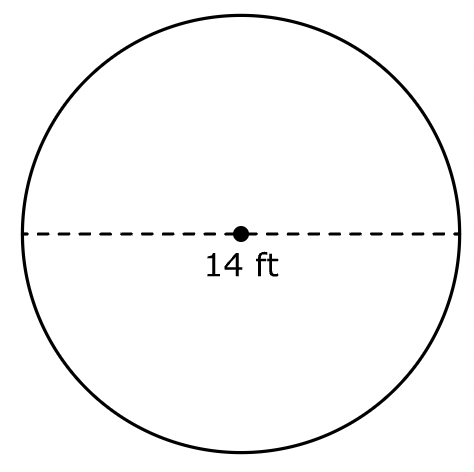 A sprinkler rotates and sprays water onto a lawn. The part of the lawn watered by the sprinkler is in the shape of a circle with the diameter shown in feet.