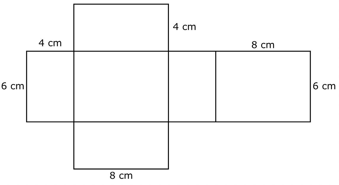 The net of a rectangular prism and its dimensions in centimeters are shown.