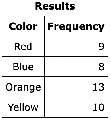 Based on these results, what is the experimental probability that the next card drawn is red or orange?