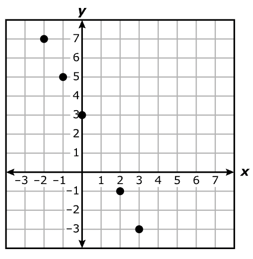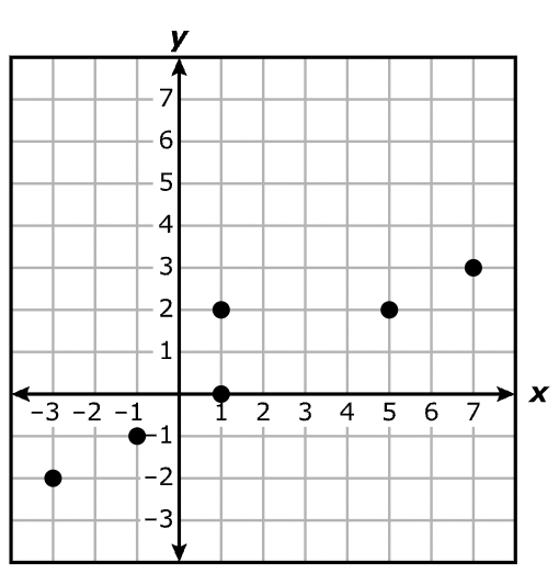 Points will be plotted on the grid with the segment to show y as a function of x. Which ordered pairs can be added to the grid to show y as a function of x?