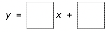 The slope of the linear relationship is __________, and the y-intercept is __________.