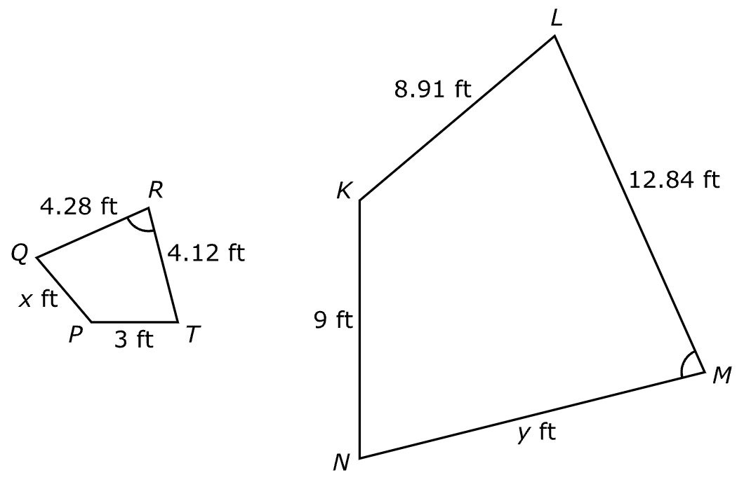 Quadrilateral PQRT and quadrilateral KLMN are similar.