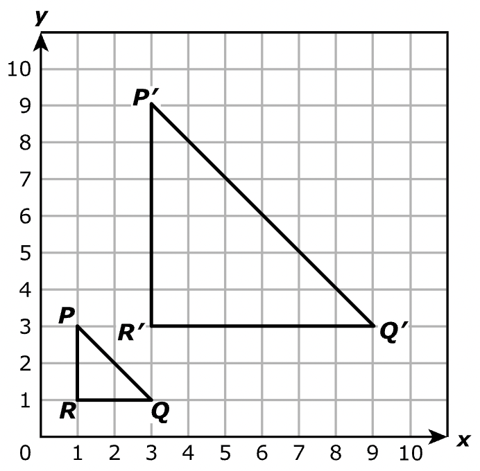 Triangle PQR is dilated with the origin as the center of dilation to create triangle P'Q'R'.