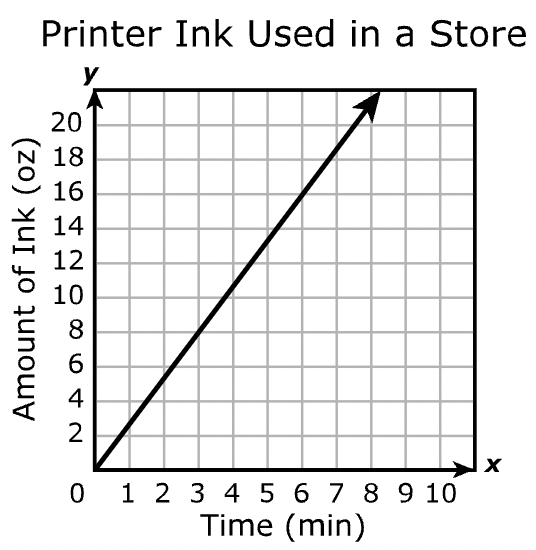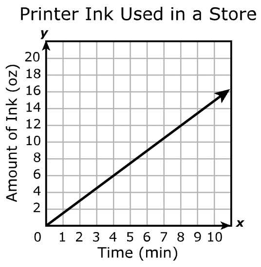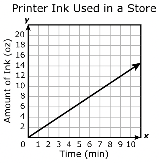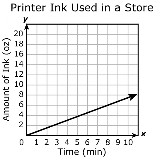 A printing store used 24 ounces of ink in 18 minutes. Which graph has a slope that best represents the average number of ounces of ink used per minute?