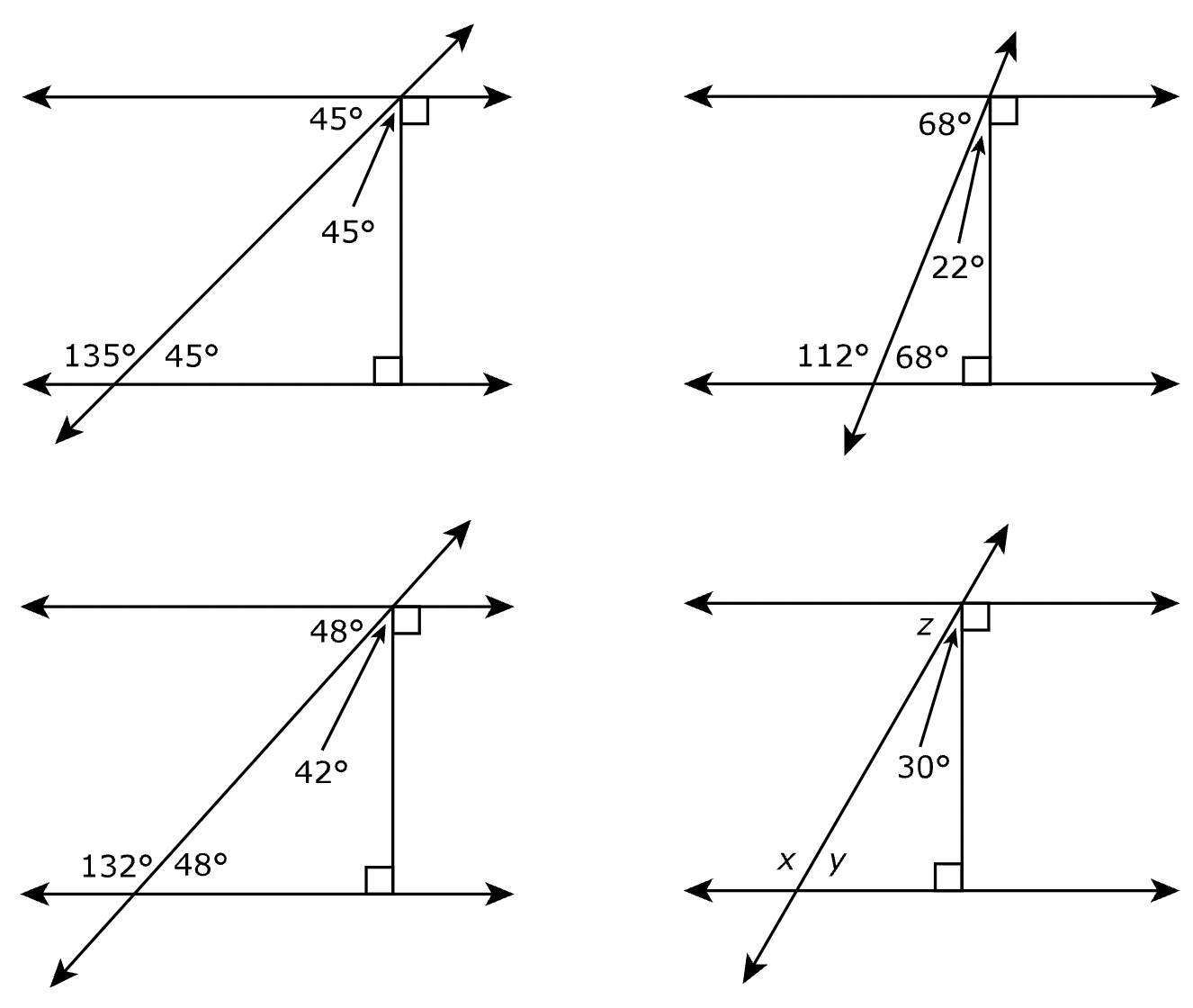 The figures shown each have a set of parallel lines intersected by a transversal.