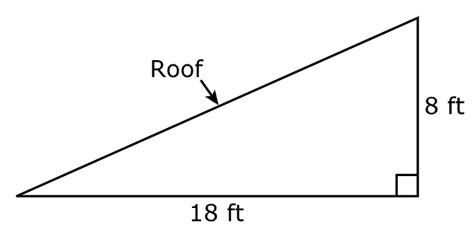 The diagram represents a side view of a roof in the shape of a right triangle.