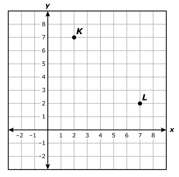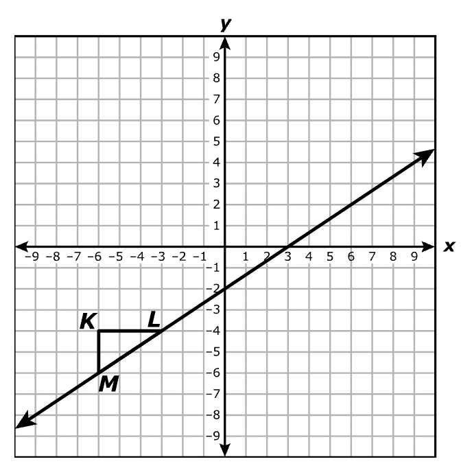 The line on the coordinate grid includes the hypotenuse of right triangle KLM.
