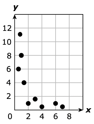 Which scatterplot best represents a nonlinear relationship between the x-values and y-values?