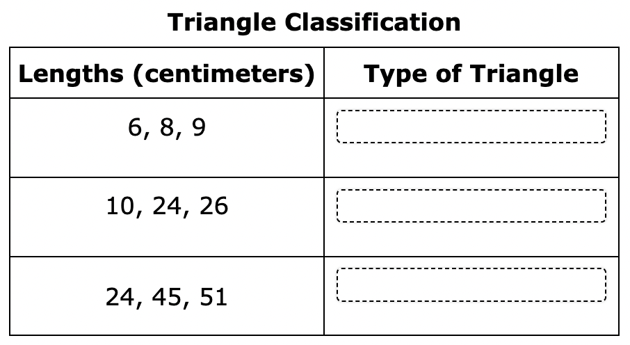 Determine whether the triangle with each set of side lengths is a right triangle or not a right triangle.