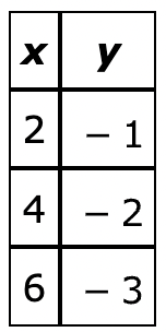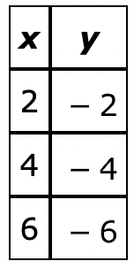 Which graph or table shows the proportional relationship described by the function y=-2x?