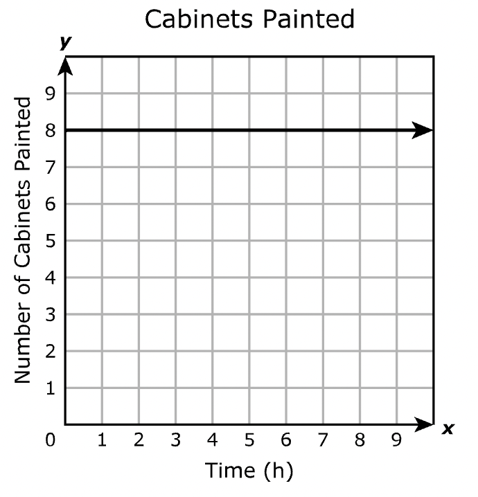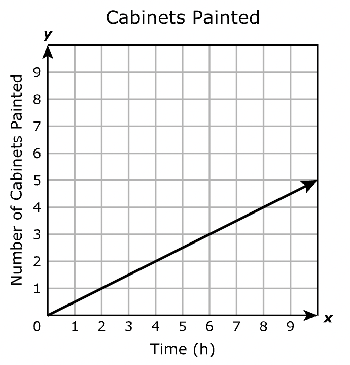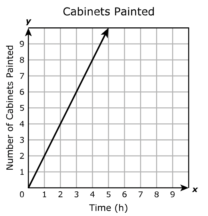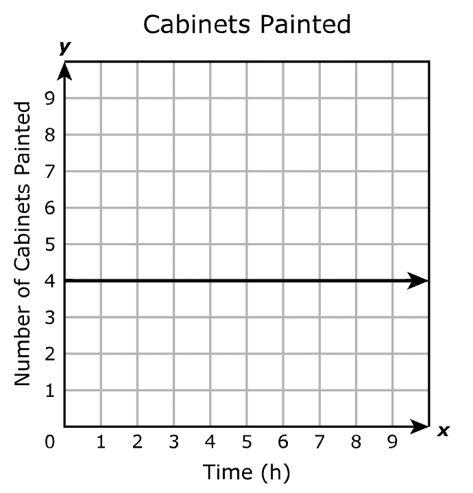 A worker paints 4 cabinets in 8 hours. Which graph has a slope that best represents the number of cabinets the worker paints per hour?