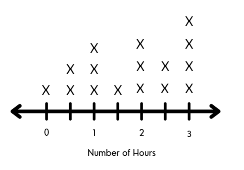 A teacher collected data on the number of hours his students read at home during the week. The line plot displays this data.