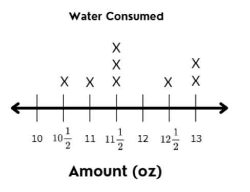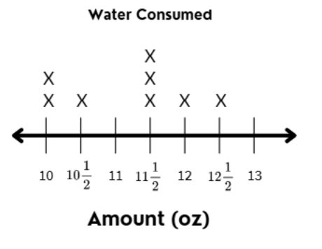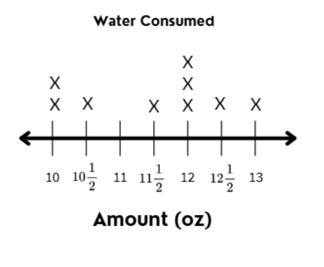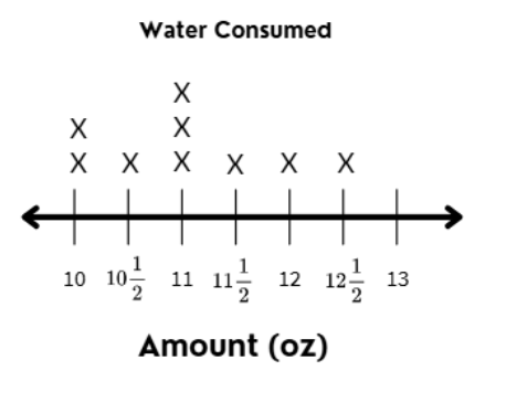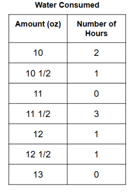 A girl records the amount of water she drinks each hour for eight hours. The data are given in the table.