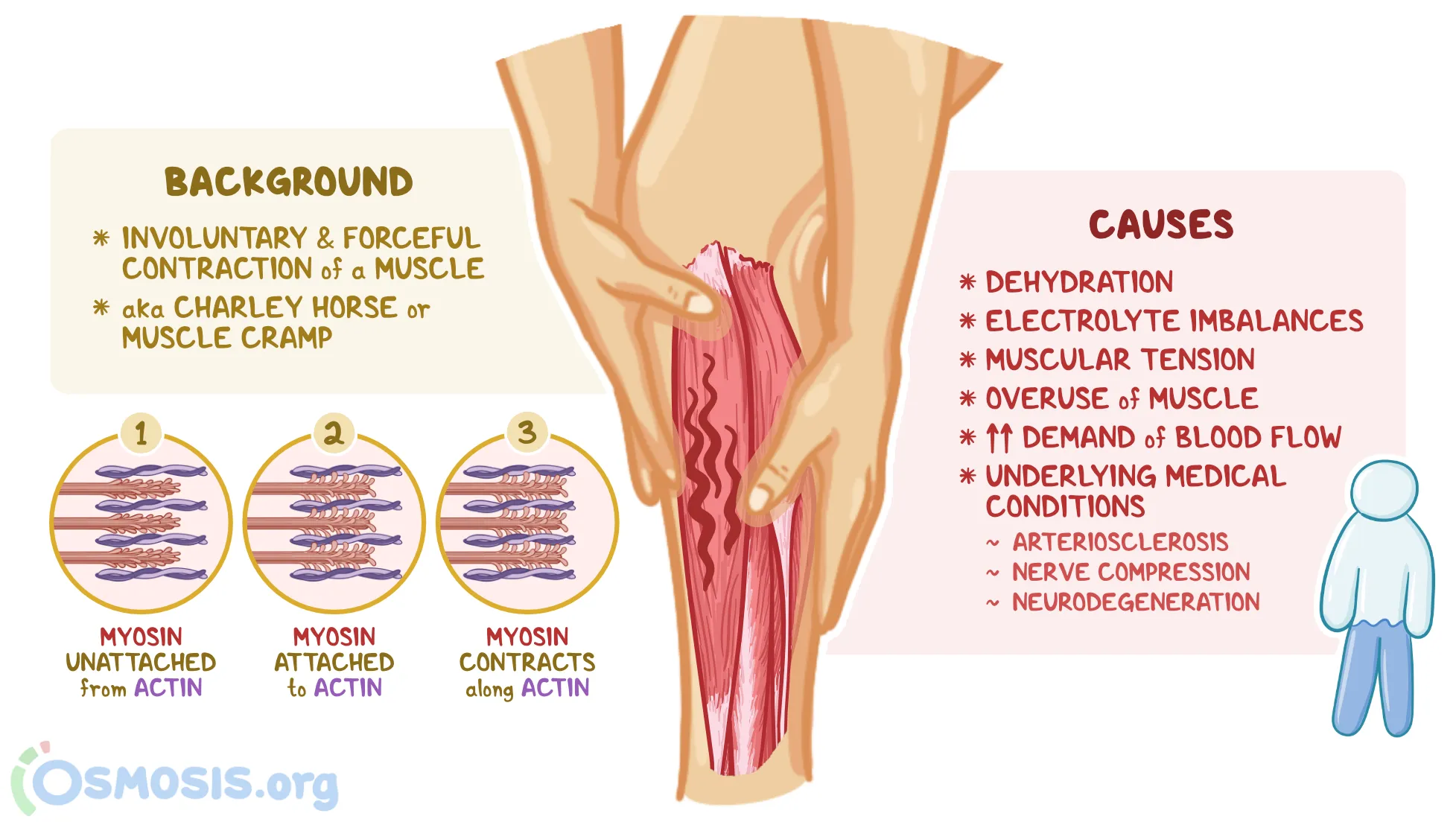 Muscle spasms, or Charlie horses, are sudden, involuntary contractions due to muscle fatigue, dehydration, electrolyte imbalances, poor circulation, or nerve compression. They cause pain, tightness, and visible twitching, treated by stretching, massaging, applying heat or cold, staying hydrated, and using muscle relaxants if necessary.