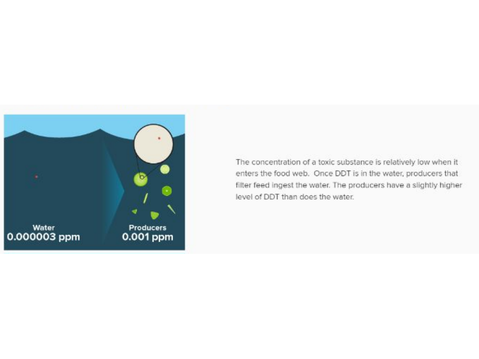 Carnivores at the higher trophic levels seem to be most affected by the accumulation of toxic substances because of a process called biological magnification (the increasing concentration of toxic substances in organisms as trophic levels increase in a food chain or food web).