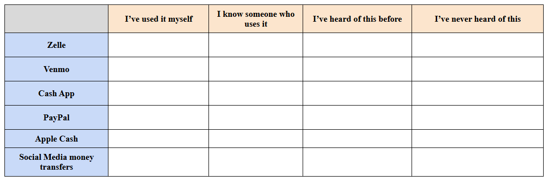 ACTIVITY: RESEARCH: Person-to-Person Payments 📷35 min