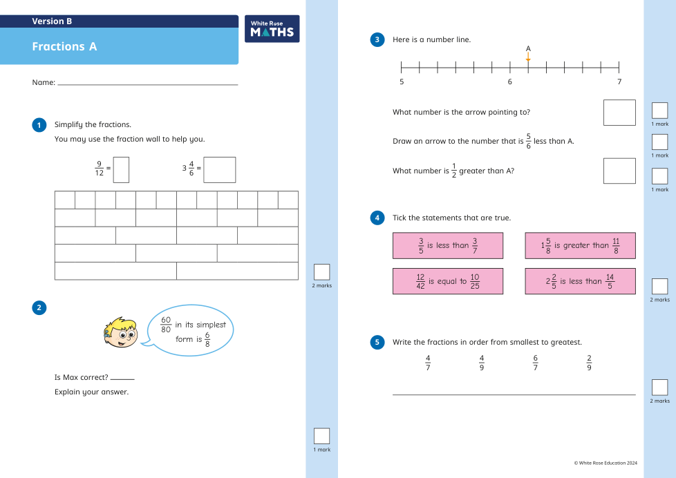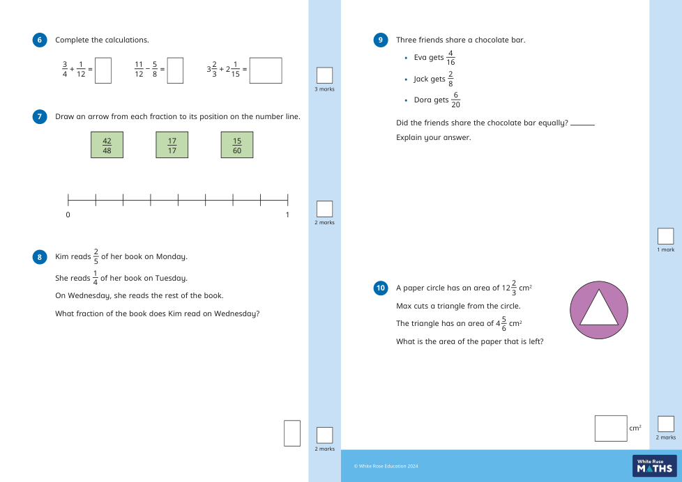 White Rose Maths post-assessment for Fractions A unit for Year 6 UK.