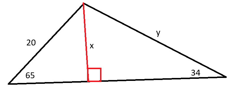 Use right triangle trigonometry to solve for x and y