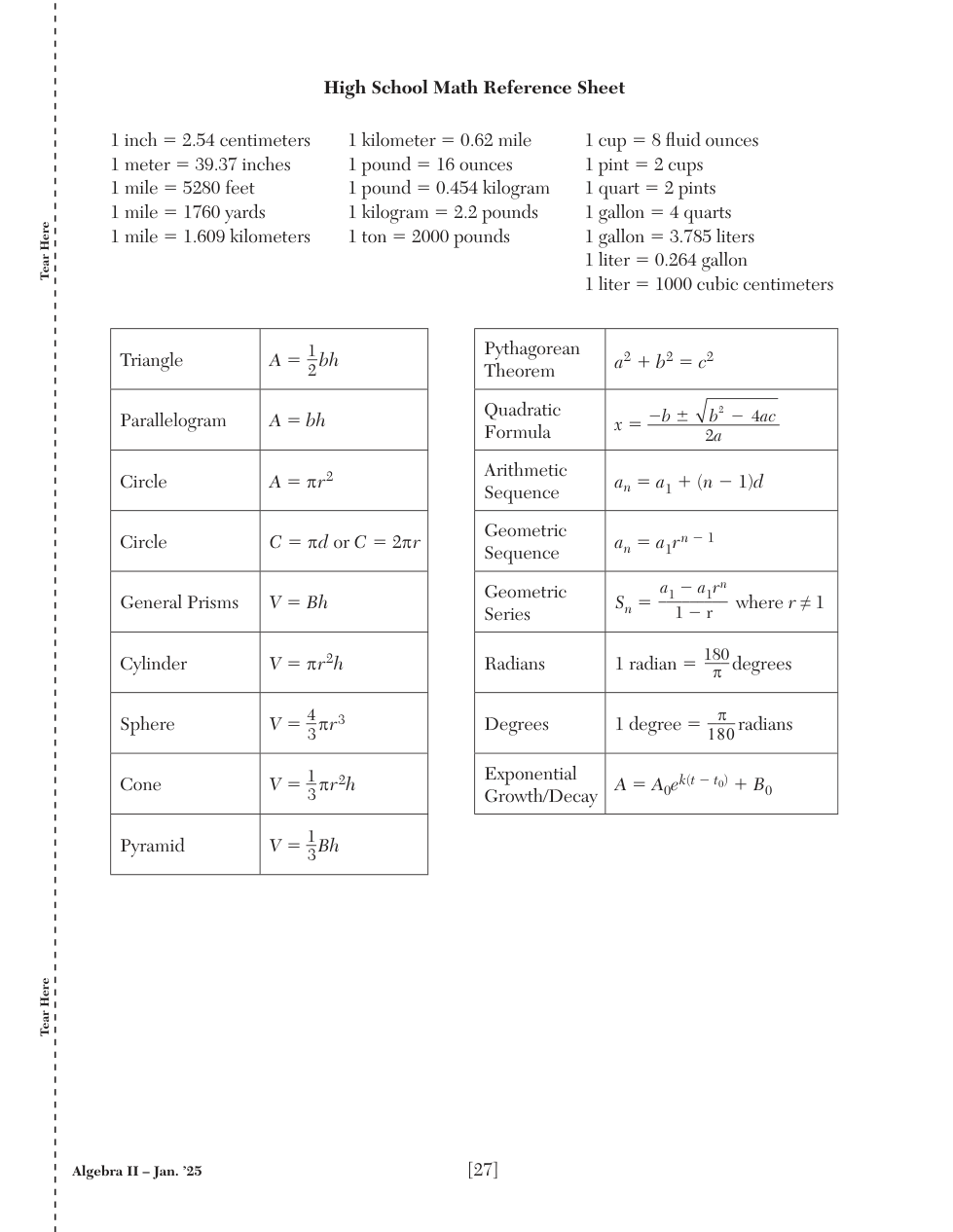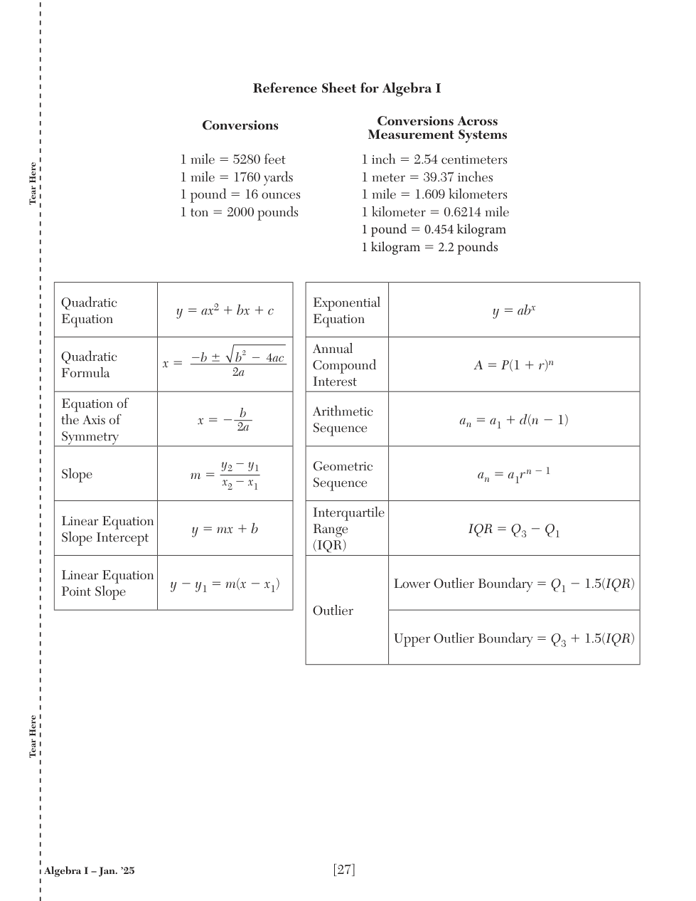 REFERENCE SHEETS: NYS Algebra & Geometry