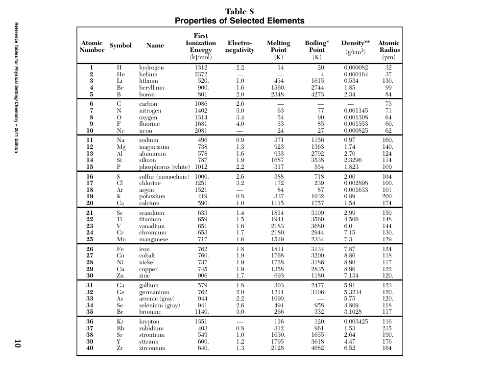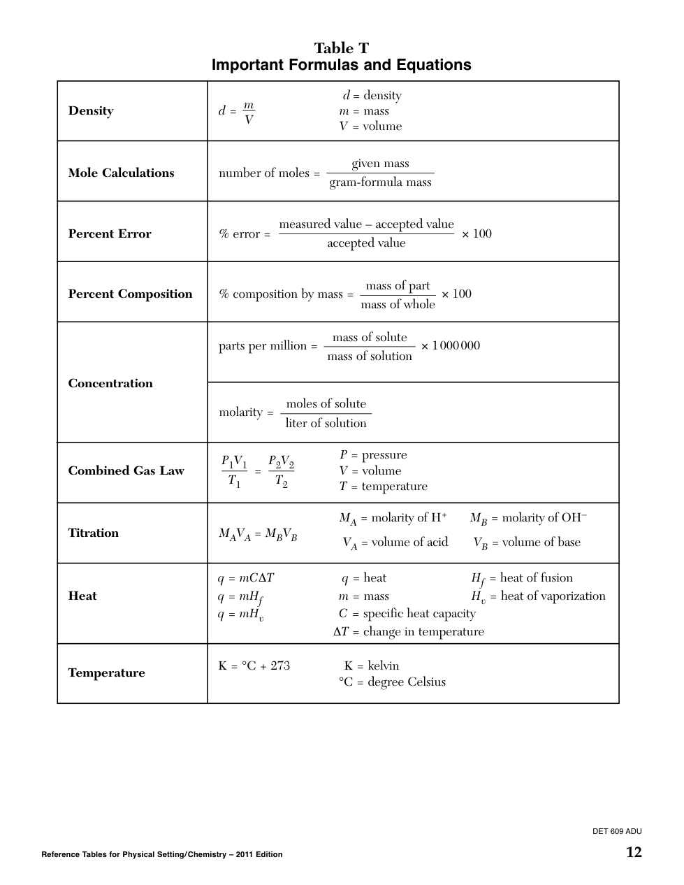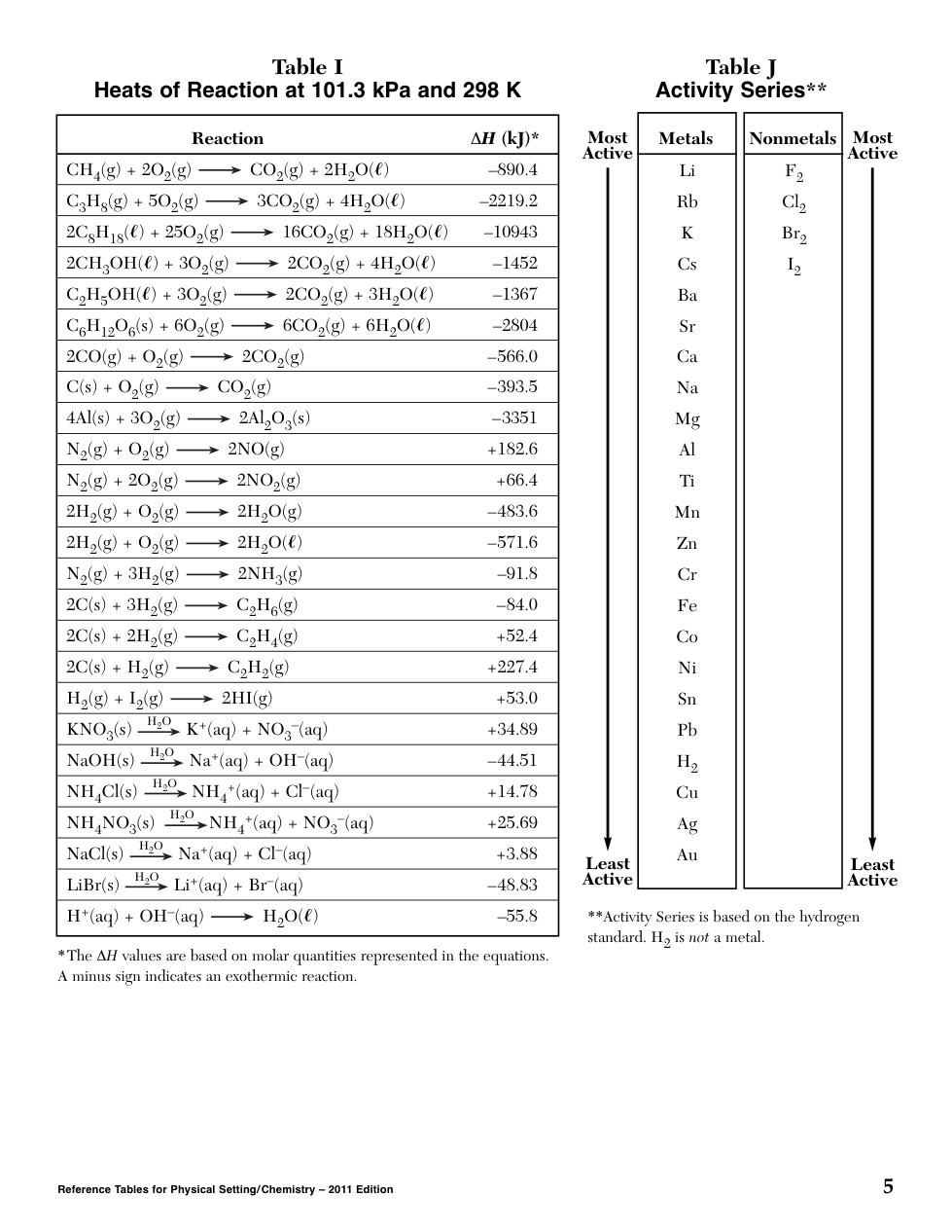 REFERENCE SHEETS: NYS Physical Setting/Chemistry