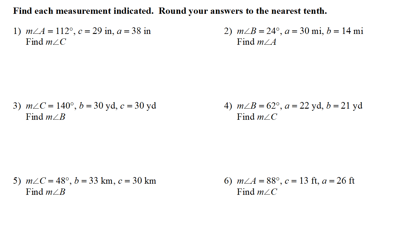 m\angle C= 117 \degree , b= 35 ft, c= 20 ft